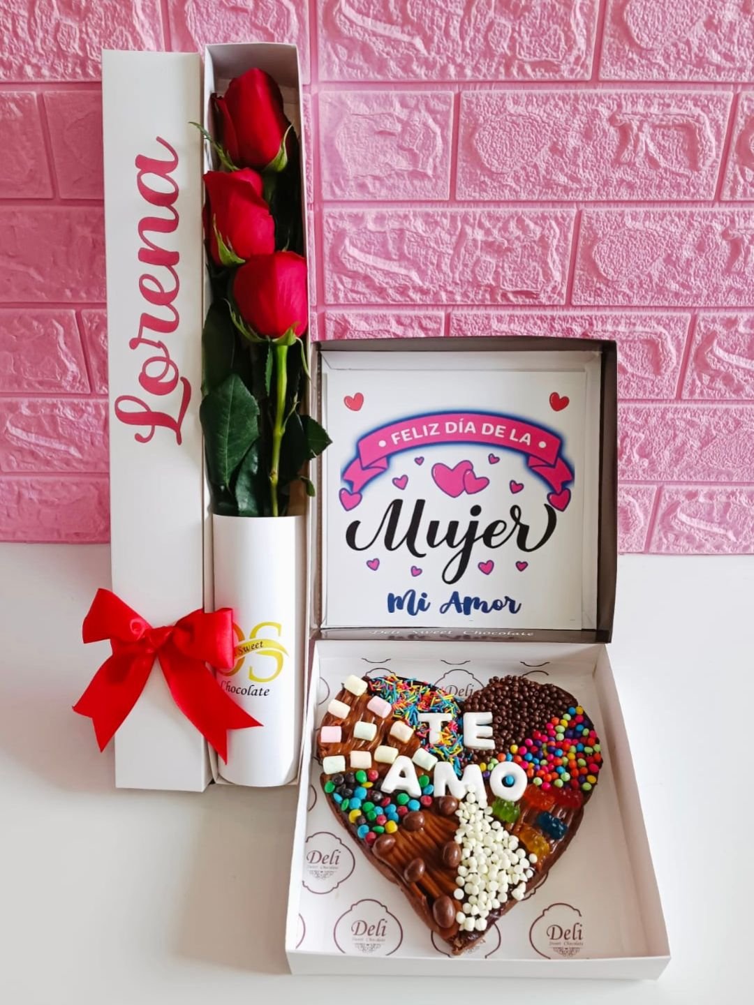 Brownie Corazon con Dedicatoria del Dia de la Mujer